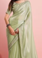 Green Organza Embroidered Sequins Border Saree For Women Party Wear