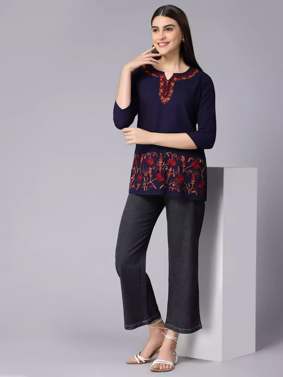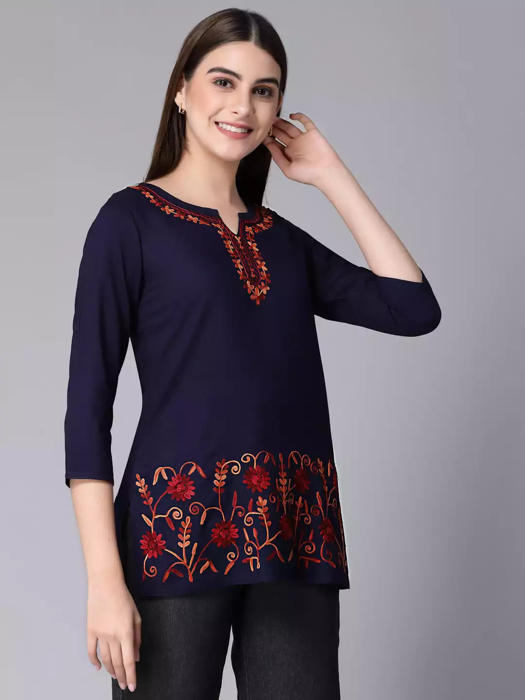 Blue Kashmiri Embroidered Short Kurti