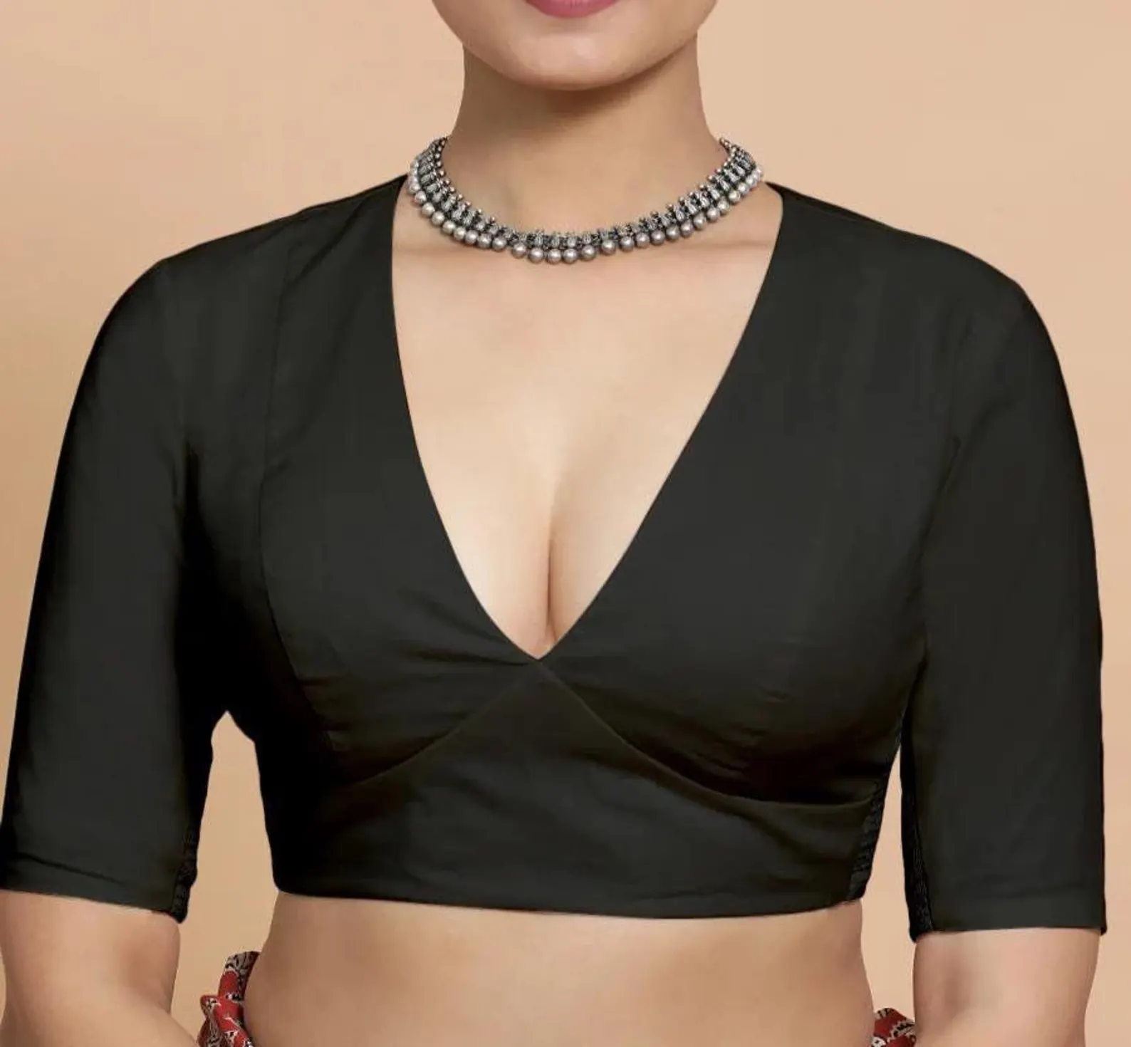 Home Blouse Full-Sleeve Blouse Made To Order Indian Designer Black colour Saree Lehenga Blouse Deep -V Neck Half sleeves blouse for women !! blouse , women blouse