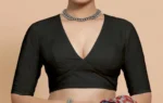 Made To Order Indian Designer Black colour Saree Lehenga Blouse Deep -V Neck Half sleeves blouse for women !! blouse , women blouse