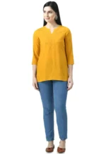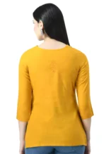 Mustard Self Chikankari Short Kurti