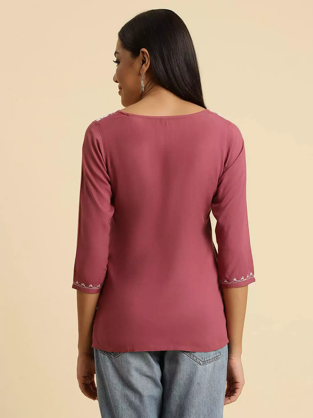 Maroon Kashmiri Silk Work Short Kurti ₹400.00
