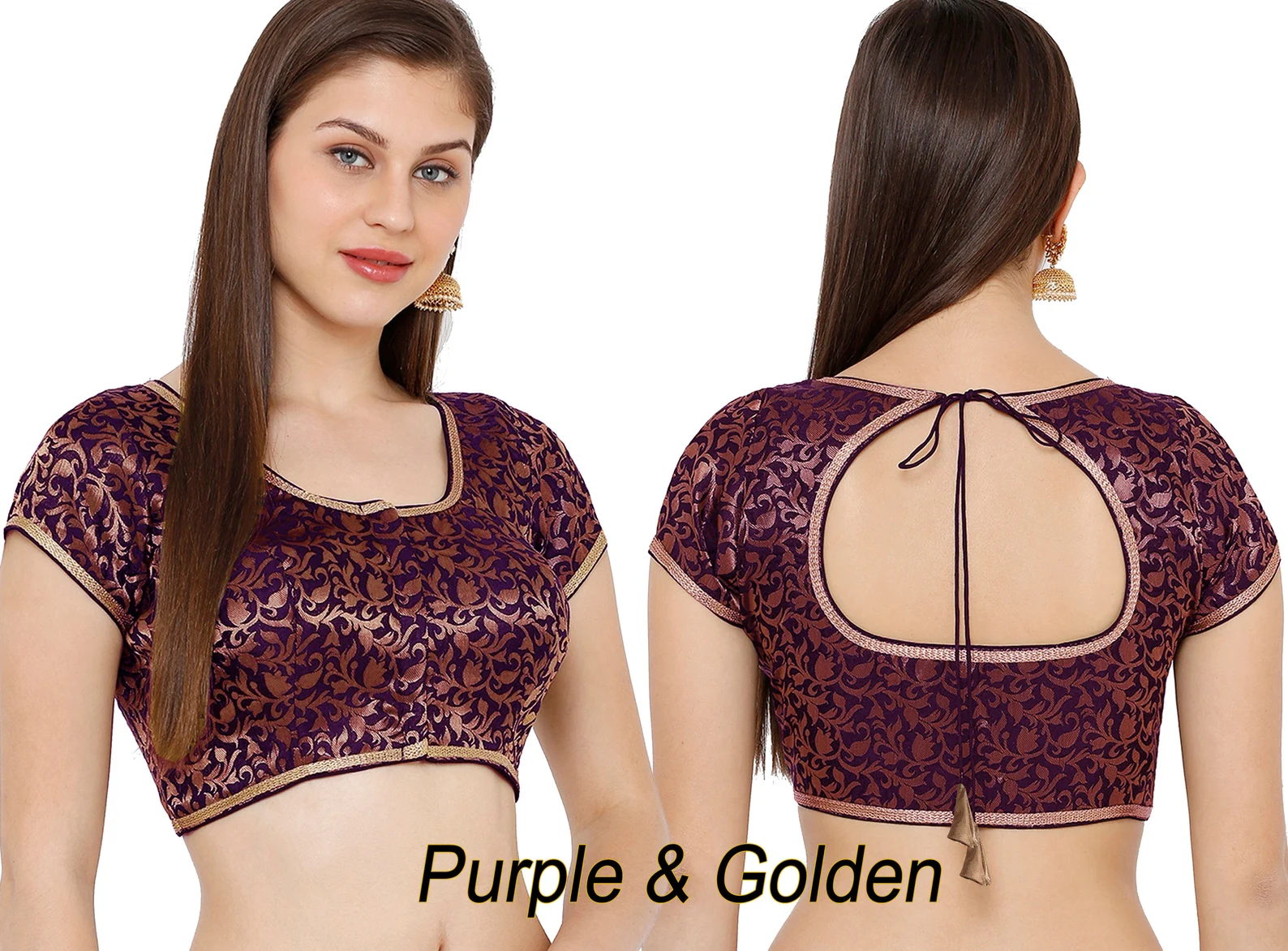 Readymade saree blouse short sleeve brocade Padded blouse for saree from back side openable with hook eye