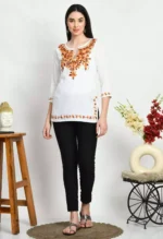 Home Short Kurtis White Kashmiri Embroidered Short Kurti
