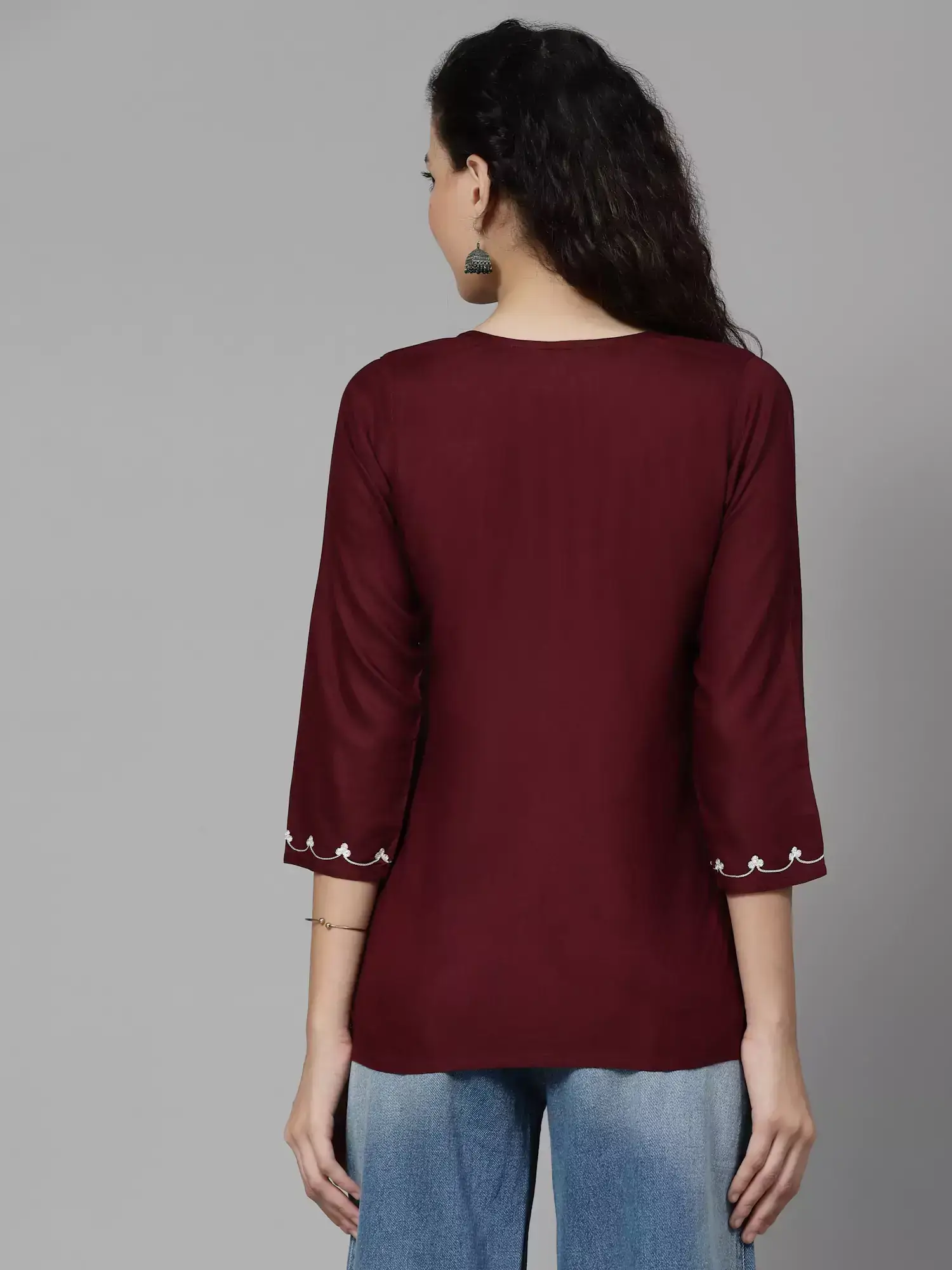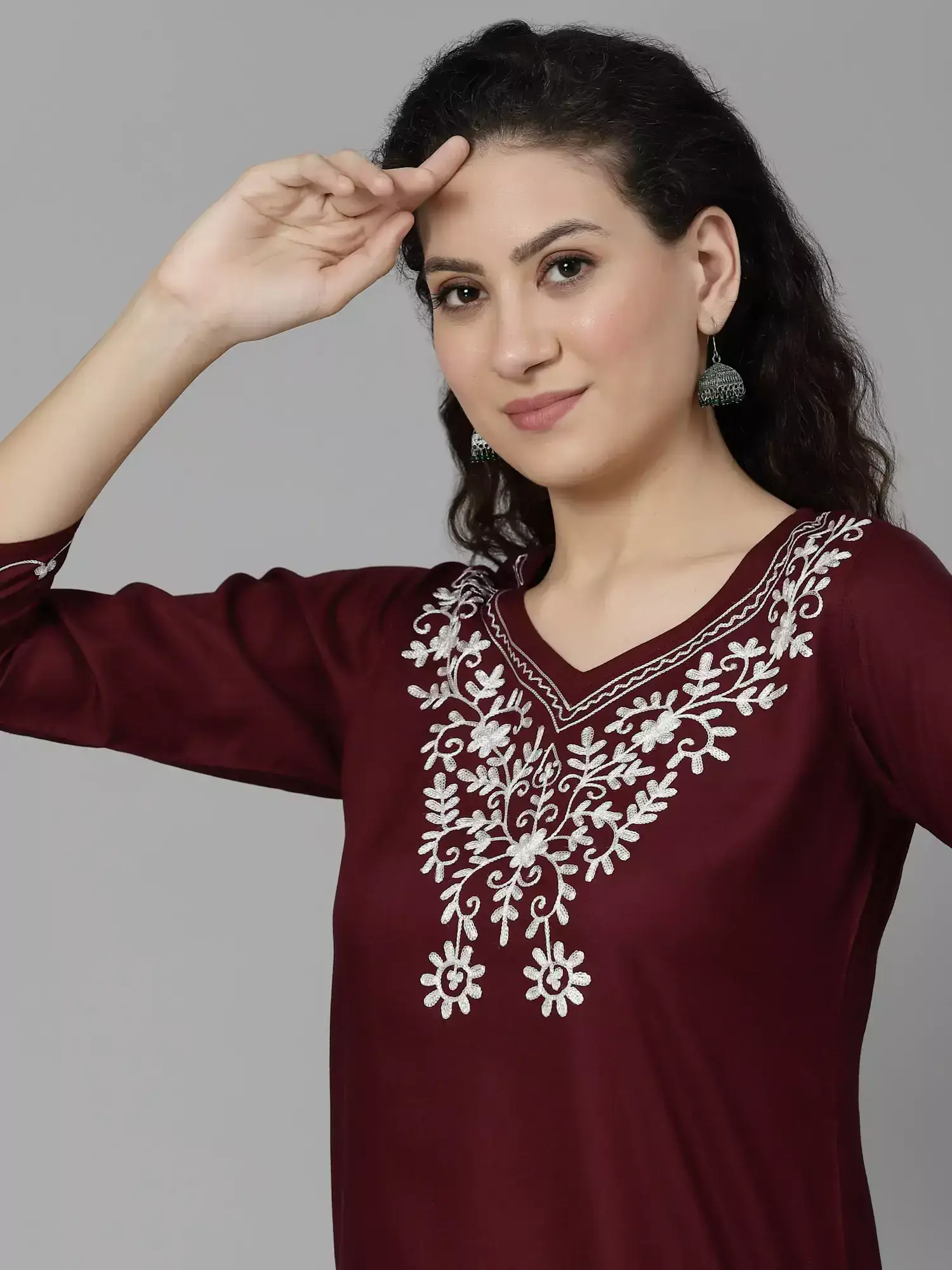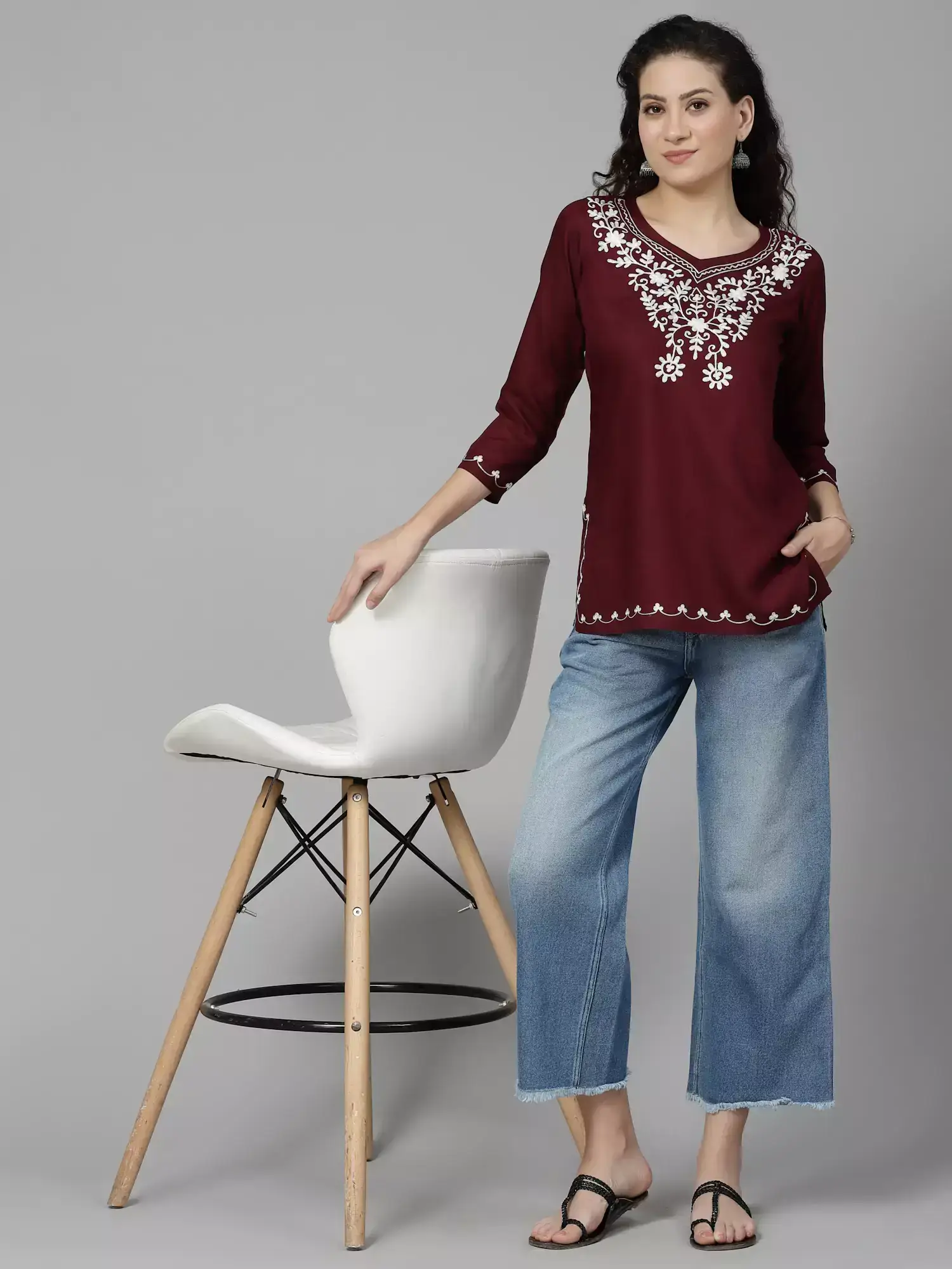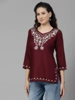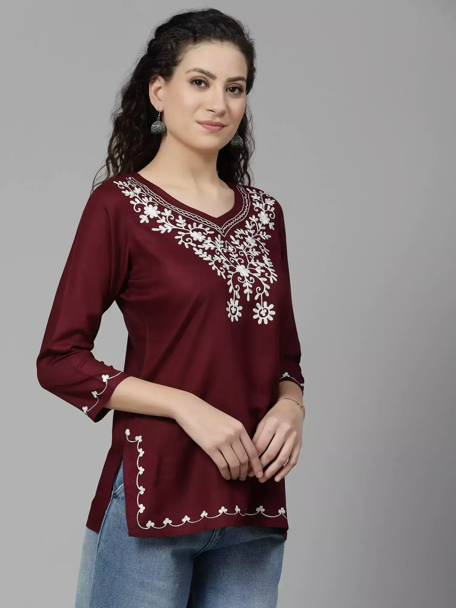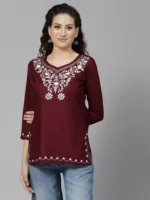 Maroon Kashmiri Silk Work Short Kurti ₹400.00