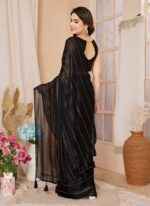 • The Georgette Stone Embossed Pre Draped Elegant Saree with Blouse is a sophisticated ensemble that exudes grace and style. This saree made from georgette fabric is perfect for those seeking a blend of traditional charm and modern convenience.