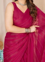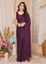 Wine Georgette Stone Embossed Pre Draped Elegant Saree With Blouse Party Wear